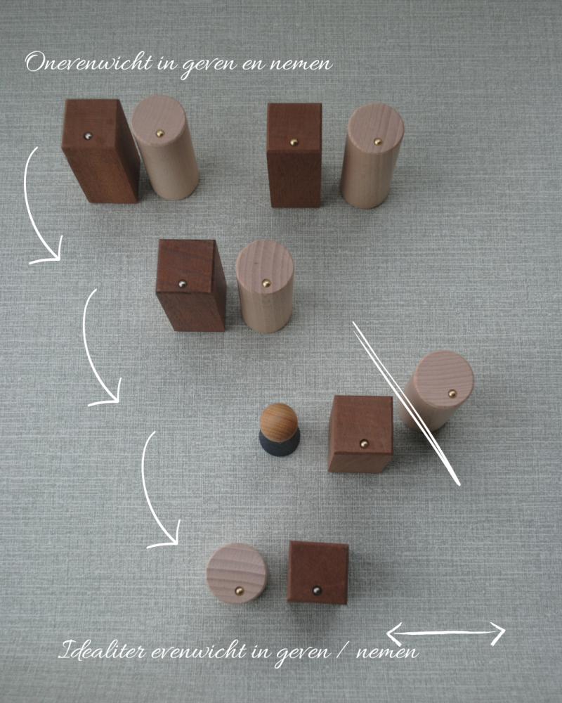 Wat er ook vormgegeven wordt in zo'n opstelling is de richting van "geven en nemen" en ook de balans of disbalans hierin.